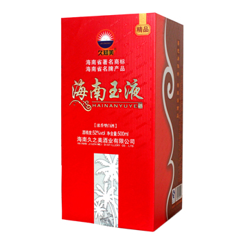 海南玉液酒是海南久之美酒業(yè)有限公司為海南本土市場量身定制的優(yōu)質濃香型白酒,飲后或豪飲后均不上頭、不口干、身體恢復快。2012年被海南省工商局認定為“海南省著名商標”;2013年被海南省名牌產品認定委員會授予為“2013年海南省名牌產品”稱號。該酒經多位國家級和省級評酒專家品評,一致認同海南玉液酒不亞于“五糧液” 。該酒的包裝設計富有強烈時代氣息和濃厚地方特色,創(chuàng)造性地采用了“要想身體好常來海南島”宣傳海南的流行語,溶匯了海南文化元素,適宜接待應酬及做饋贈禮品,是海南...[更多內容]